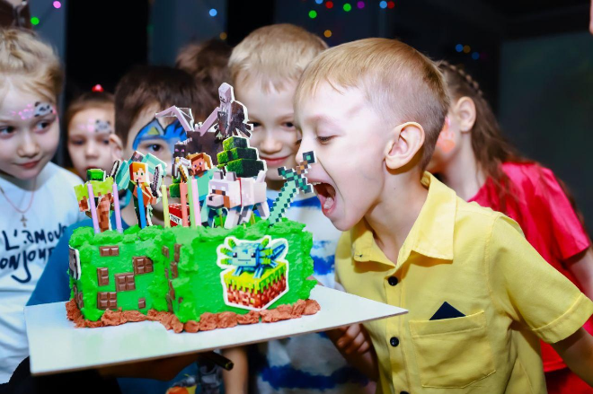 - Интерактивные аттракционы (строим замки в песочнице, побеждаем драконов в кидалке, гоняем на скейте, оживляем рисунки, рисуем на стенах, стреляем по мишеням в лазертаге, топчем вирусы в топтыжке, сражаемся в майнкрафт битве)